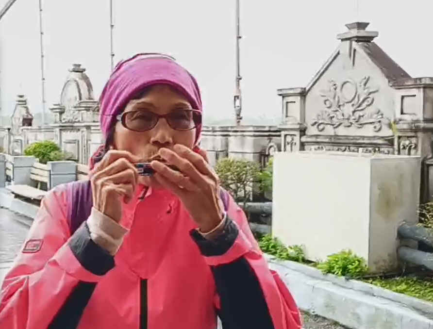 幸福阿嬤享受吹口琴之樂